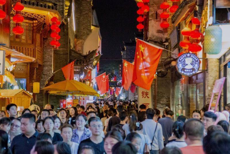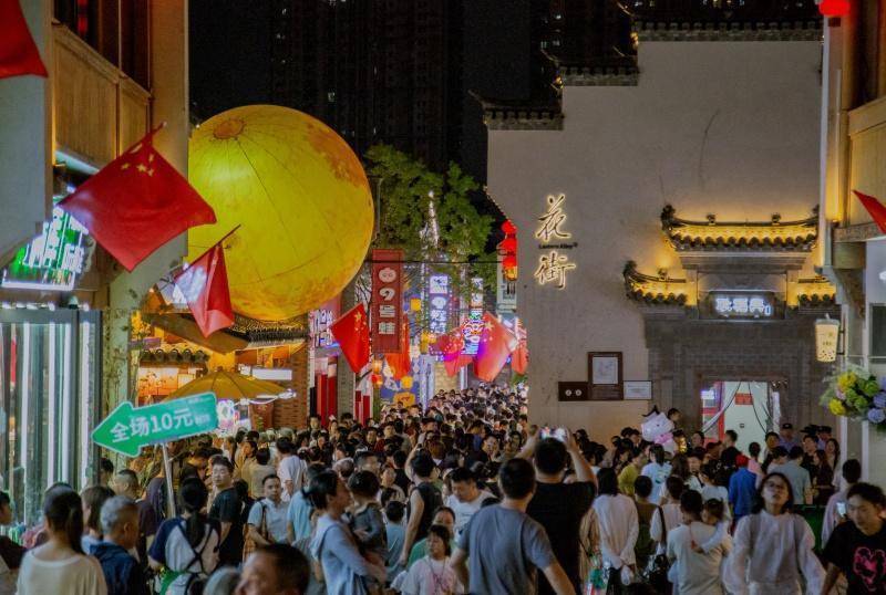 刚完成改造的中山路步行街成为假期“顶流”,9月30日开放后,凭借“街区+盒子+公园”新形态与“湖街一体”景观,吸引市民游客纷至沓来。第三届长江文化艺术周、第四届“乐享镜湖”国风集市同步落地,带来非遗展、文创市集等体验,街区客流持续高位——开放首日客流突破18万人次,1-6日步行街客流超90万人次,日均客流16万人次。