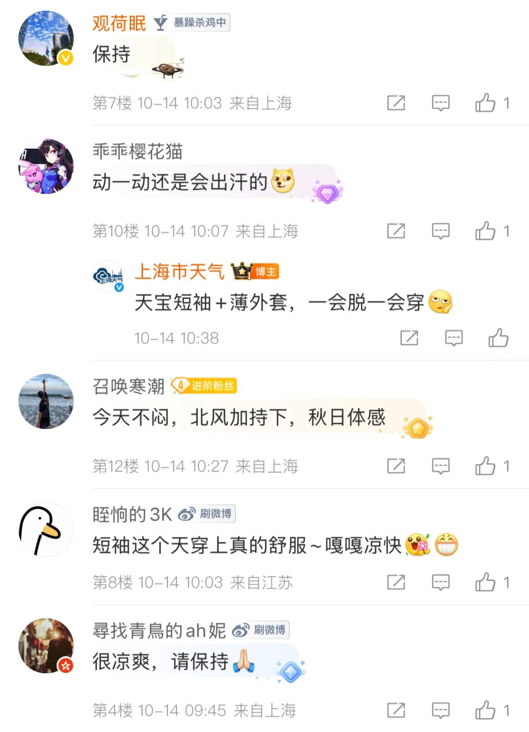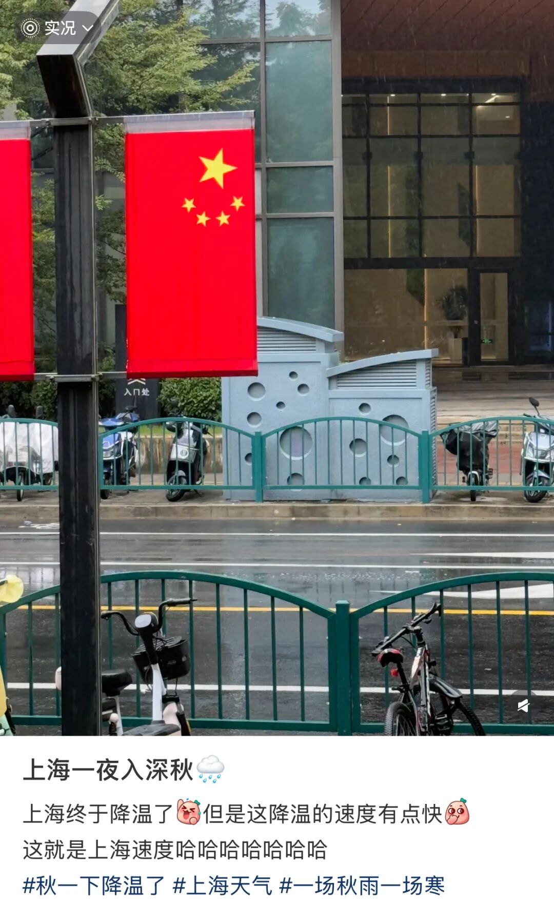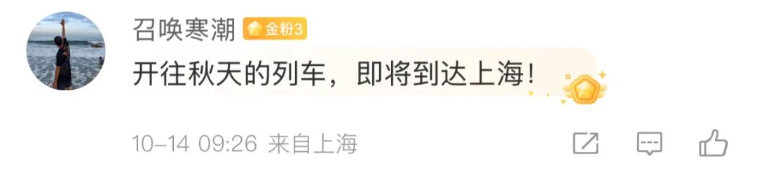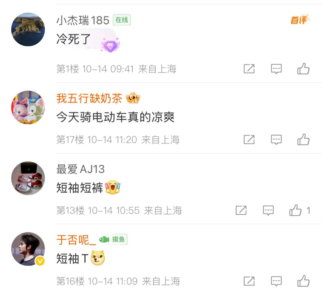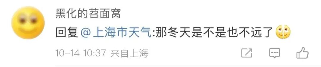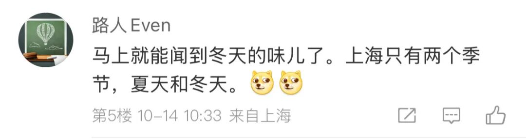 不过也有网友调侃,上海只有两个季节,夏天和冬天,马上就能闻到冬天的味儿了。(毕竟立冬就在眼前……)