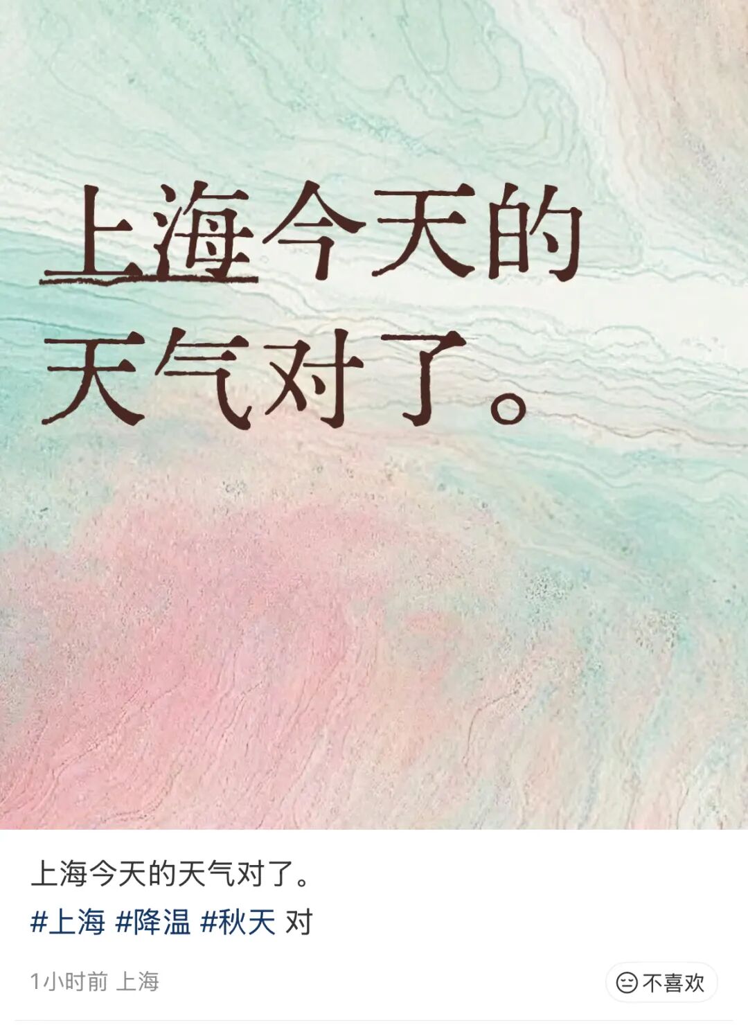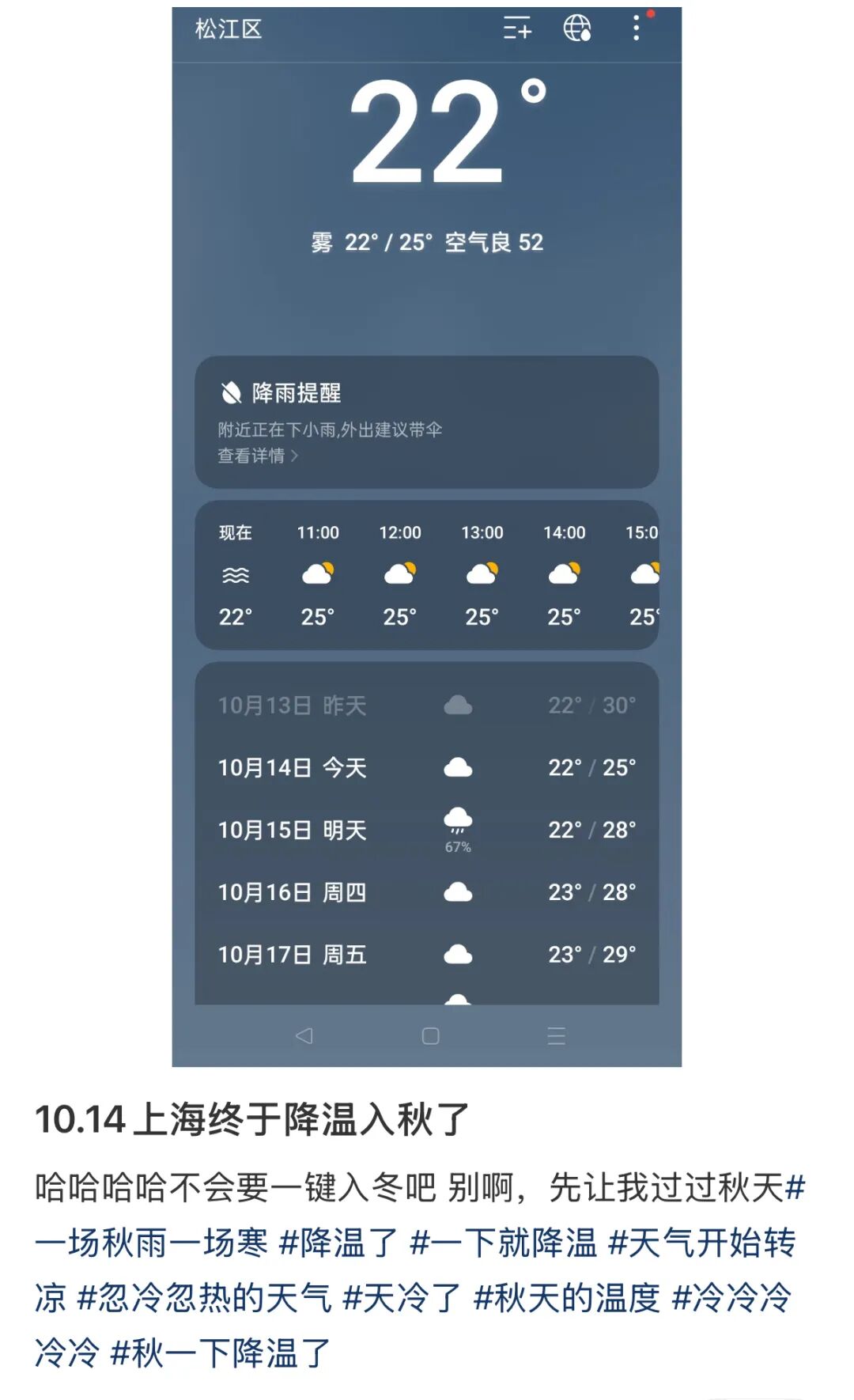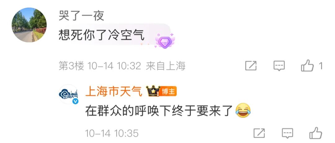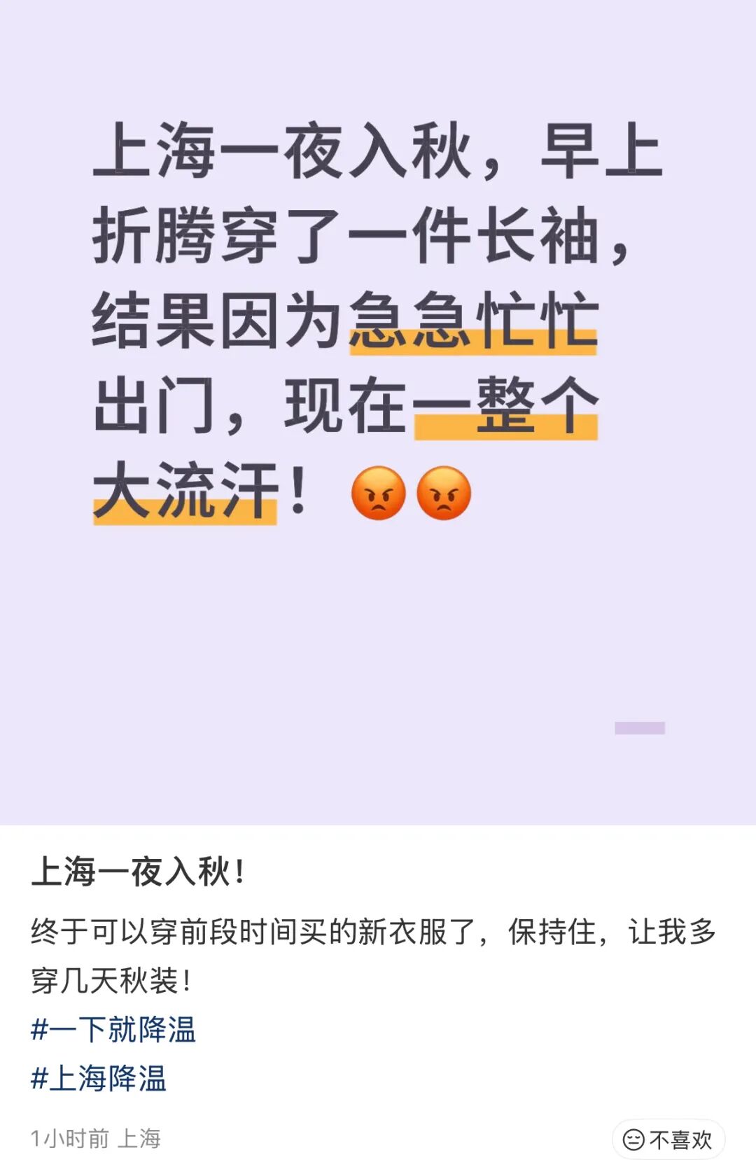 不过也有网友调侃,上海只有两个季节,夏天和冬天,马上就能闻到冬天的味儿了。(毕竟立冬就在眼前……)
